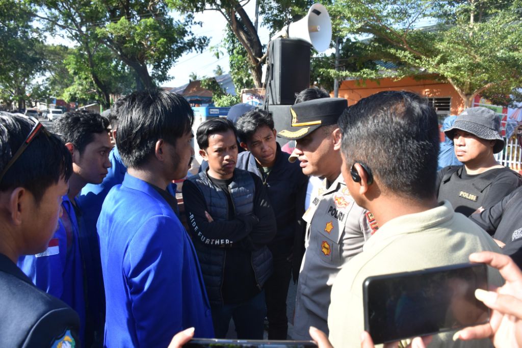 Kapolres Bulukumba AKBP Restu Wijayanto, S.I.K bersama Dandim 1411/Blk Letkol Inf. Sarman, S.Hub Int., turut hadir langsung memantau jalannya aksi dengan menemui dan melakukan pendekatan persuasif serta humanis kepada peserta aksi.