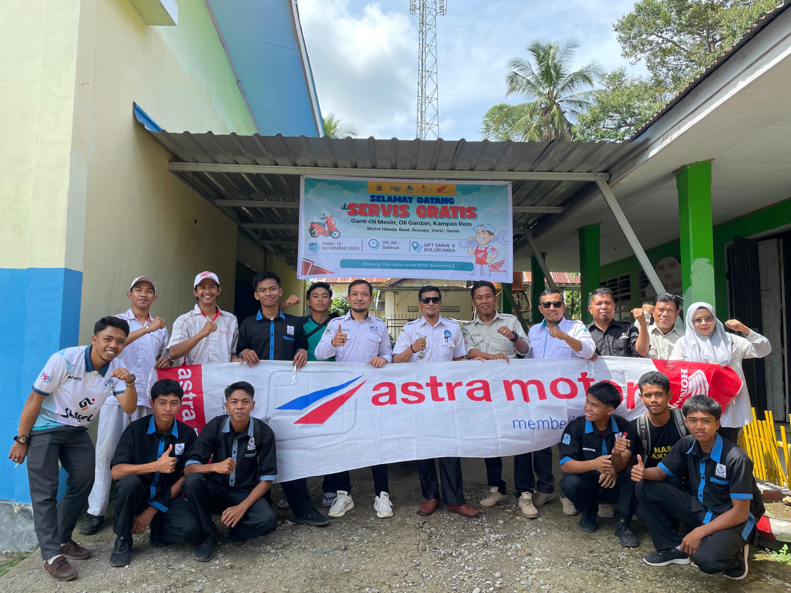 PenandaBerita.Com,BULUKUMBA — Bengkel Astra Honda Bulukumba 2 memberikan layanan servis dan ganti oli gratis untuk Guru dan Siswa SMK Negeri 5 Bulukumba. Rabu (12/11/2025).